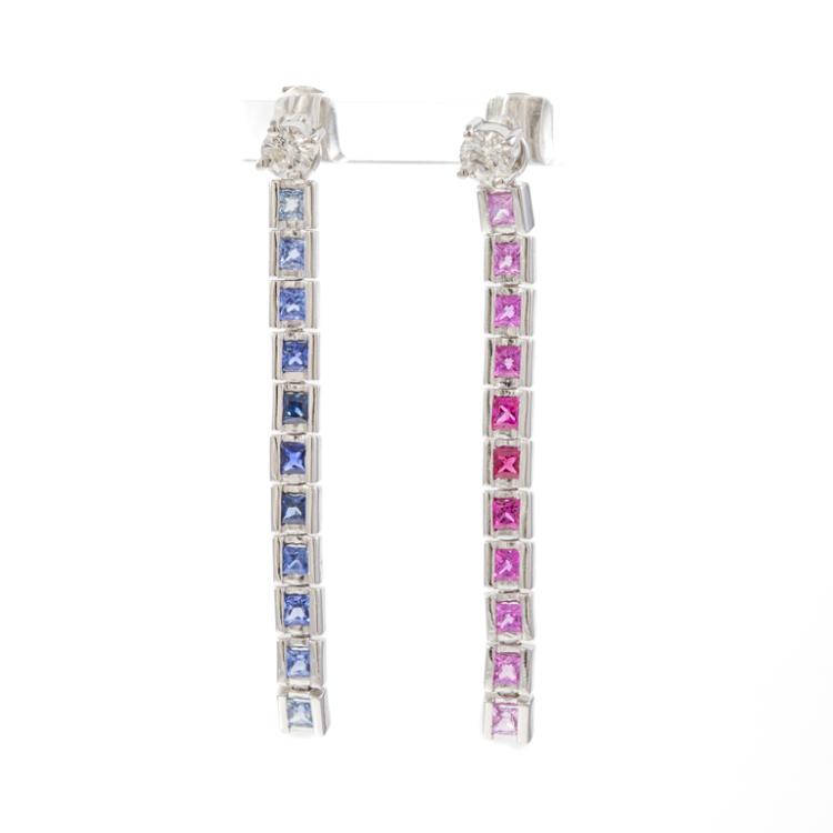 Diamond stud earrings with 2 round brilliant cut Natural Diamonds totalling 0.40ct (Estimated grading: IJ P1) together with detachable multi-colour Natural Sapphires totalling approximately 1.30ct. Platinum 850. Weight: 7.8g. (Pre-owned)