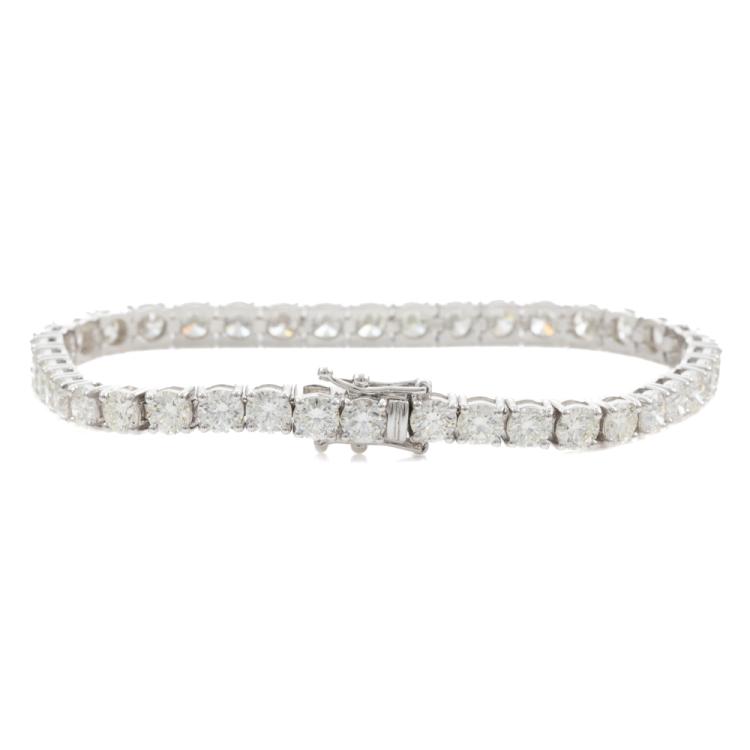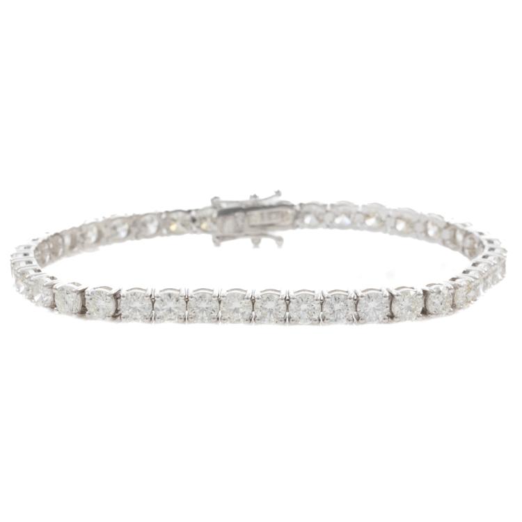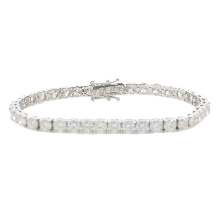 Diamond tennis bracelet with 40 round Natural Diamonds totalling 11.92ct (Estimated grading: I-J VS-SI). 18ct white gold. Length: 18cm. Weight: 16.1g. With Valuation Certificate #418848. (New)