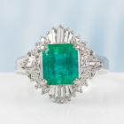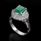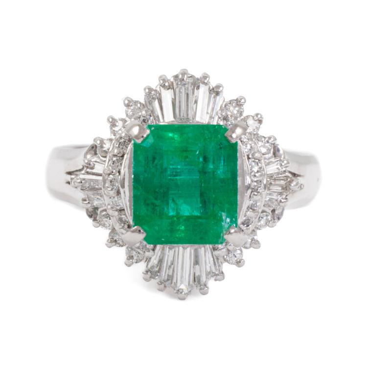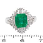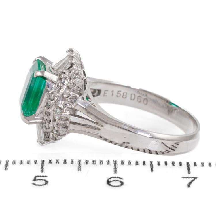 Emerald and Diamond ring with emerald cut Natural Emerald of 1.58ct and round & baguette cut Natural Diamonds totalling 0.60ct (Estimated grading: H-I VS-SI). Platinum-900. Ring size L 1/4. Band width: 3.0mm - 3.5mm. Weight: 7.0g. (Pre-owned)