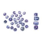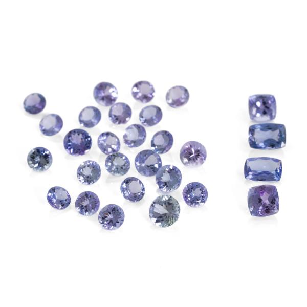A Loose parcel of 24 round natural Tanzanites totalling 21.2ct and 4 cushion cut natural Tanzanites totalling 7.90ct. Size of round Tanzanites: 7.5 x 4.9mm - 5.9 x 3.1mm with Valuation Certificate #40764; size of cushion cut Tanzanites: 9.0 x 6.5 x 4.3mm - 6.9 x 6.7 x 5.1mm with Valuation Certificate #40765. (Pre-Owned)