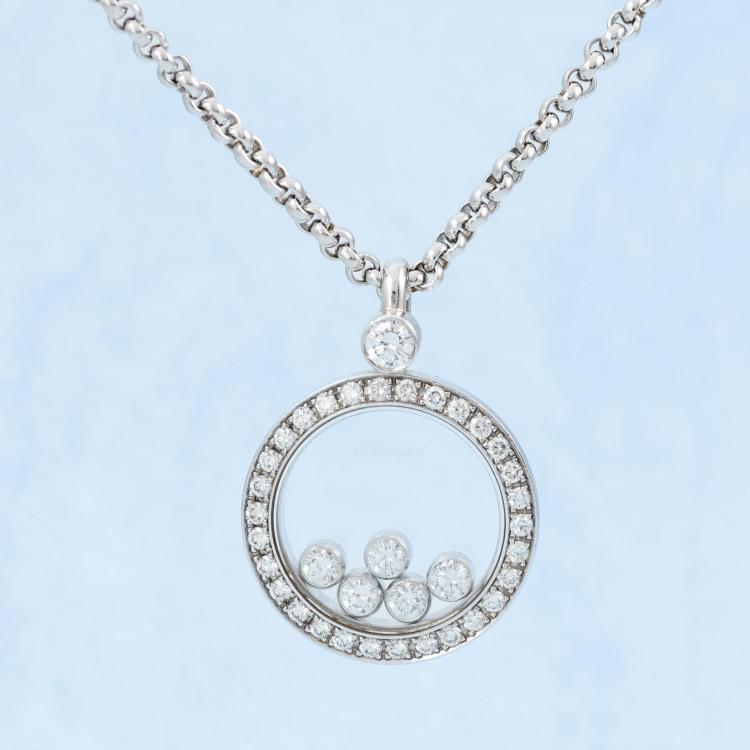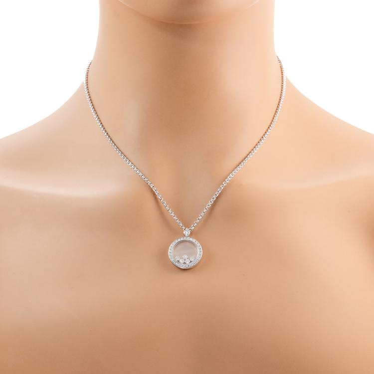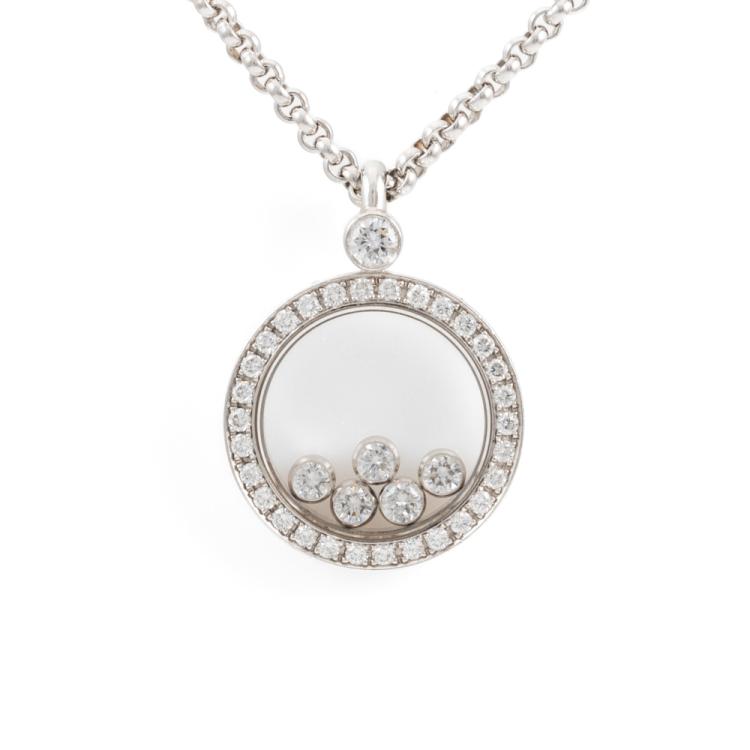Chopard Happy Diamonds Icon pendant with round Diamonds totalling approximately 0.65ct (Estimated grading: F VVS). 18ct white gold with 42.5cm 18ct white gold chain. Weight: 14.7g. With Certificate #419058. (Pre-owned)