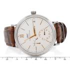 IWC Schaffhausen Portofino stainless steel manual winding mens watch. Silver dial, small second, date, case diameter: 45mm, adjustable max wrist size: 17.5cm, Swiss made. Ref# IW510103. With IWC brown leather strap and clasp. With Certificate of Authenticity, IWC Guarantee card dated 03/12/2013 and IWC box. 3 month FSA warranty (Pre-owned)
