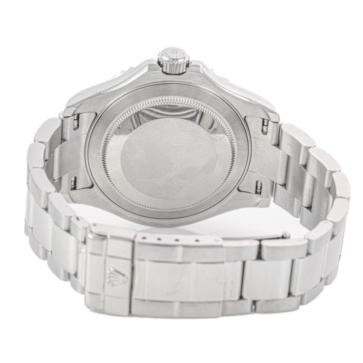 Rolex Oyster Perpetual Date Yacht Master stainless steel and platinum automatic mens watch. Silver dial, date, case diameter: 40mm, wrist size: 17.5cm, Swiss made. Ref# 16622. Circa: 2002. With Rolex stainless steel Oyster bracelet and clasp. With Certificate of Authenticity, Rolex International Service Guarantee card dated 31/03/2014 and Rolex box. 3 month FSA warranty. (Pre-owned)