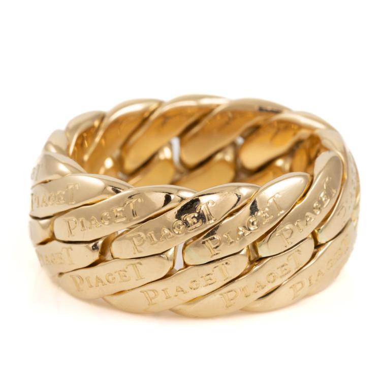 Piaget gold ring. 18ct yellow gold. Ring size W - ring resizing is not recommended. Band width: 10.5mm. Weight: 26.3g. With Certificate #418128. (Pre-owned)