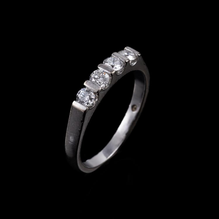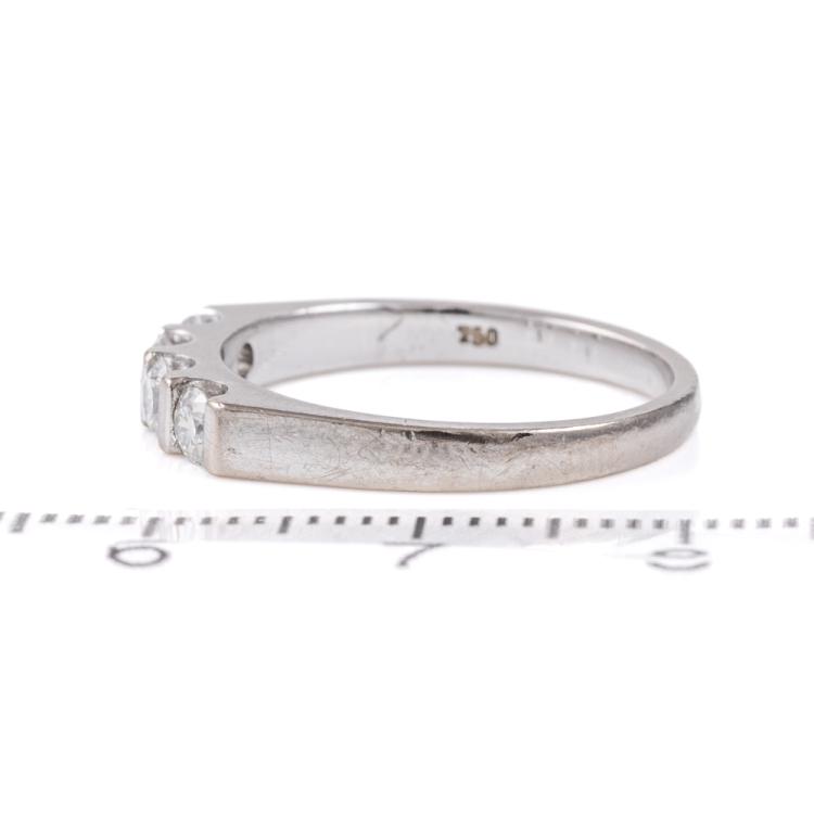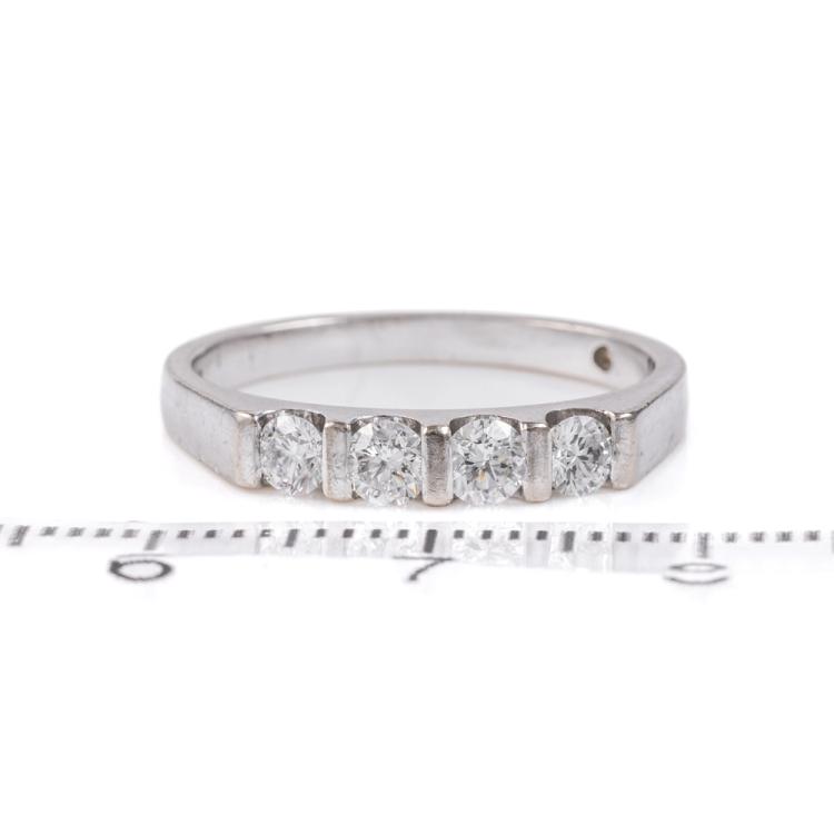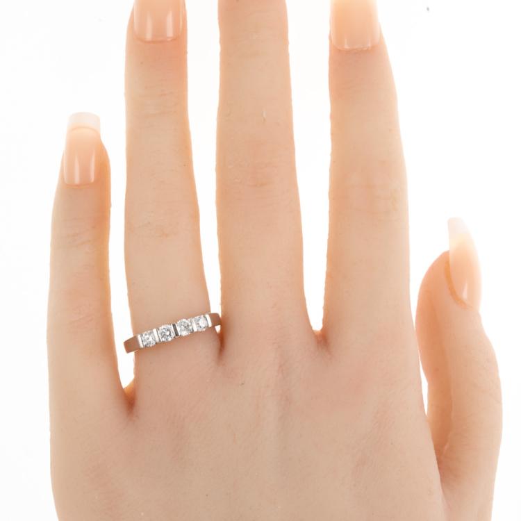 Diamond eternity ring with 4 round Natural Diamonds totalling approximately 0.40cts (Estimated grading: F-G SI). Ring size O. Band width: 2mm-3mm. Weight 3.8g. (Pre-owned)