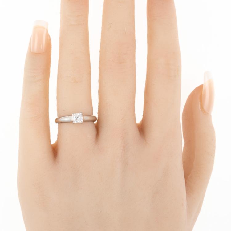 Tiffany & Co Lucida Diamond solitaire ring with a cut cornered square mixed cut Natural Diamond of 0.43ct (with Tiffany & Co Diamond Certificate graded as E VS2). Platinum 950. Ring size K - ring resizing is not recommended. Band width: 2.3mm-3.2mm. Weight: 4.6g. With Tiffany & Co box. (Pre-owned)