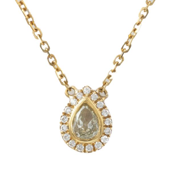 Diamond pendant with centre pear shape natural yellow Diamond of 0.44ct (Estimated grading: Fancy Yellow SI2) and round natural Diamonds totalling 0.10ct. 18ct yellow gold with 18ct yellow gold attached chain. Length: 40cm. Weight: 2.9g. (As New)