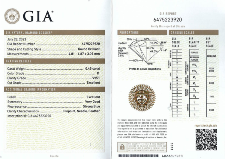 A loose round brilliant cut natural Diamond of 0.45ct (with GIA Summary Report graded as D VVS1#6475223920). (New)