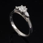 Diamond trilogy ring with a centre round brilliant cut natural Diamond of 0.50ct ( with GIA Report #6282997229 graded as G SI2) and two shoulder pear shape natural Diamonds totalling approximately 0.18ct. Platinum 950. Ring size P. Band width: 2.5mm. Weight: 6.1g. With Valuation Certificate #80179. (Pre-owned)