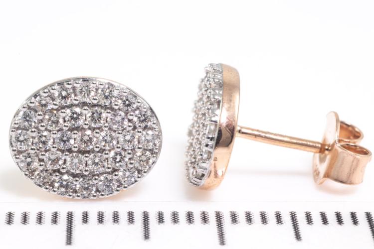 Diamond earrings with 58 round natural diamonds totalling 0.55ct. (Estimated grading: H SI). 14ct rose gold. Weight: 2.6g. (New)^