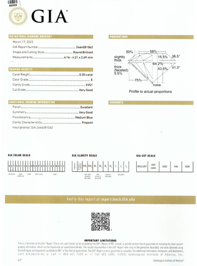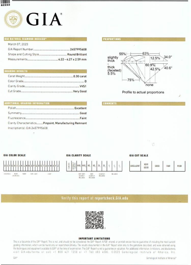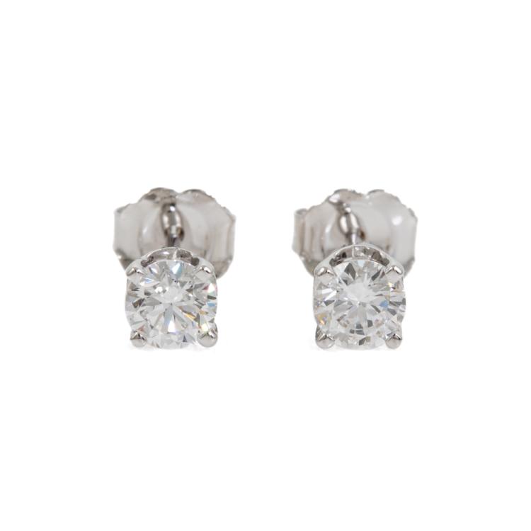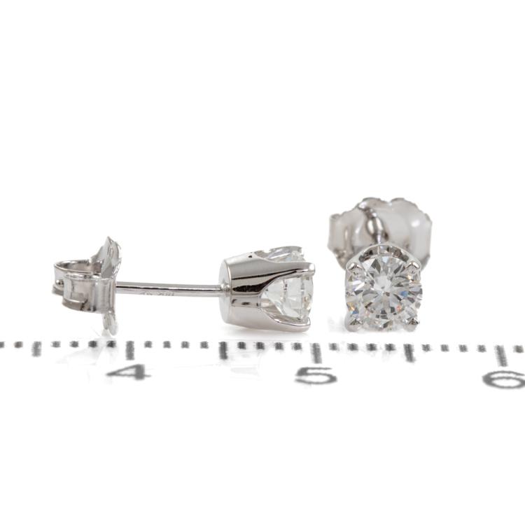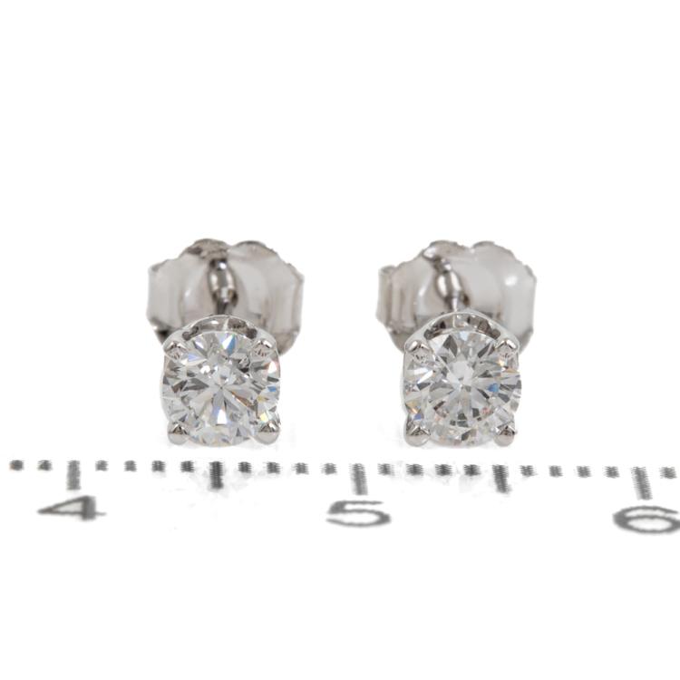 Diamond stud earrings with 2 round brilliant cut Natural Diamonds totalling 0.60cts (both with GIA digital Summary Reports both graded as D VVS1 & E VVS1 #2464081062, 2457995608). 18ct white gold. Weight 1.2g. (New)