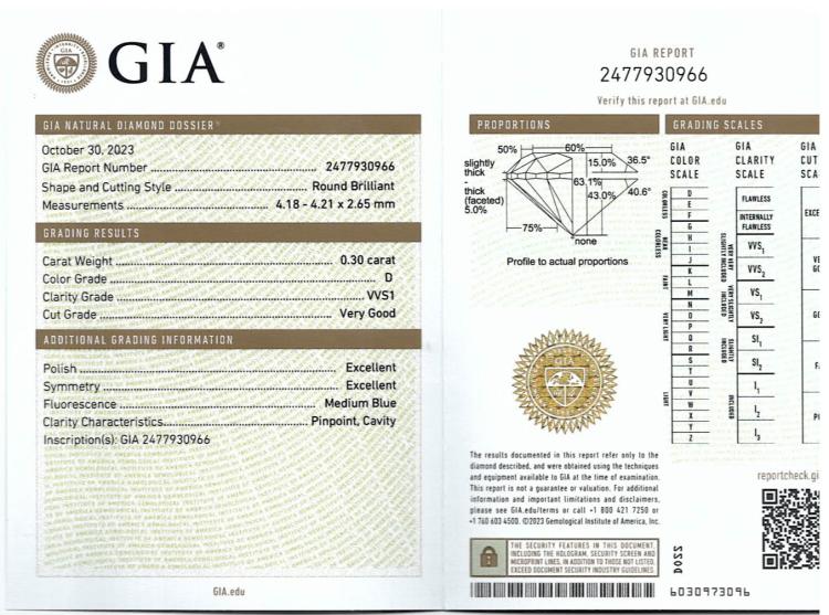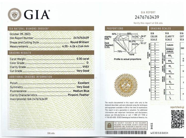 Diamond stud earrings with 2 Round brilliant cut natural Diamonds totalling 0.60ct (both with GIA Summary Reports both graded as D VVS1 #2477930966, 2476763439). 18ct yellow gold. Weight 0.9g (New)