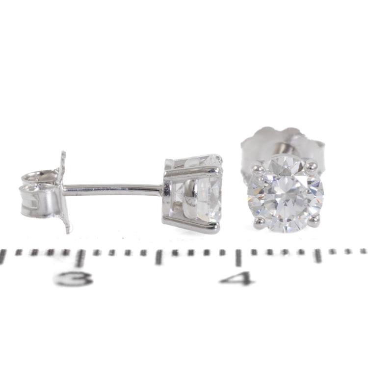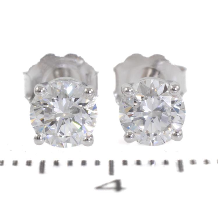Diamond stud earrings with 2 round brilliant cut natural Diamonds totalling 1.01ct (both with GIA Summary Reports both graded as D VVS2 #5486047545, 2467946581). 18ct white gold. Weight: 1.1g. (New)