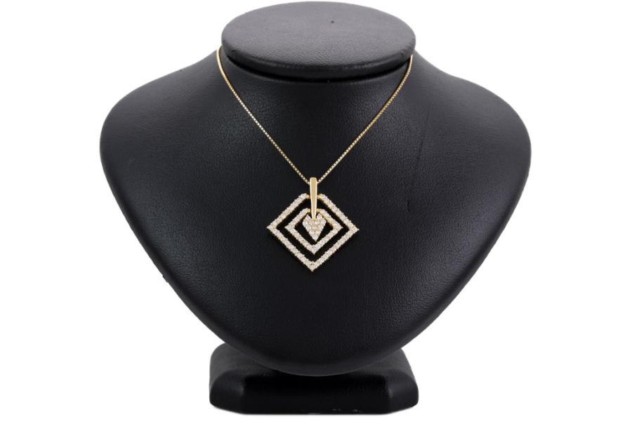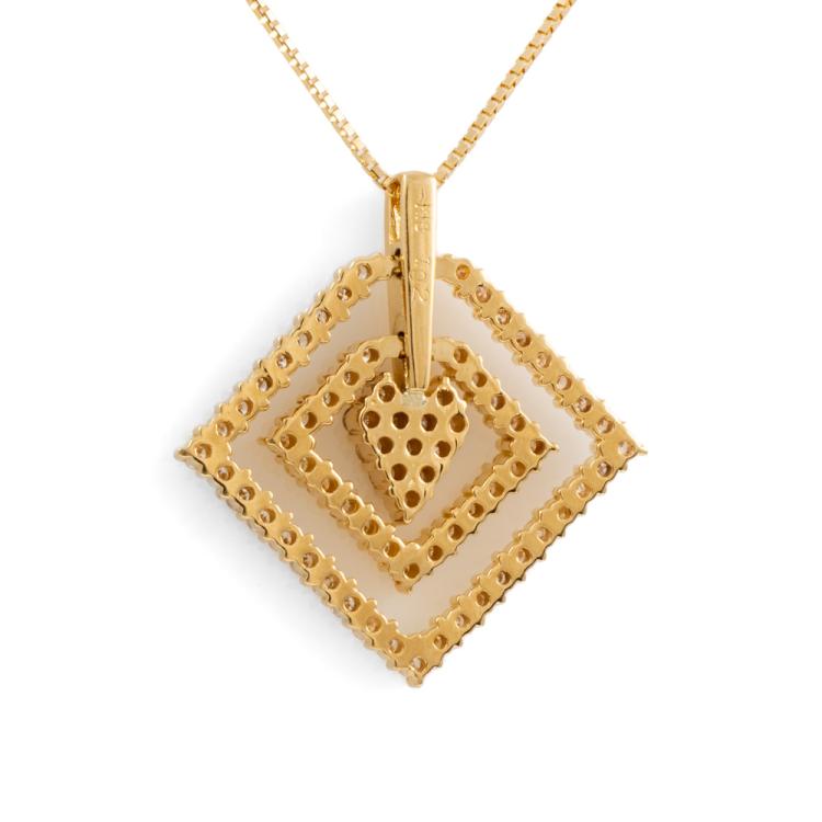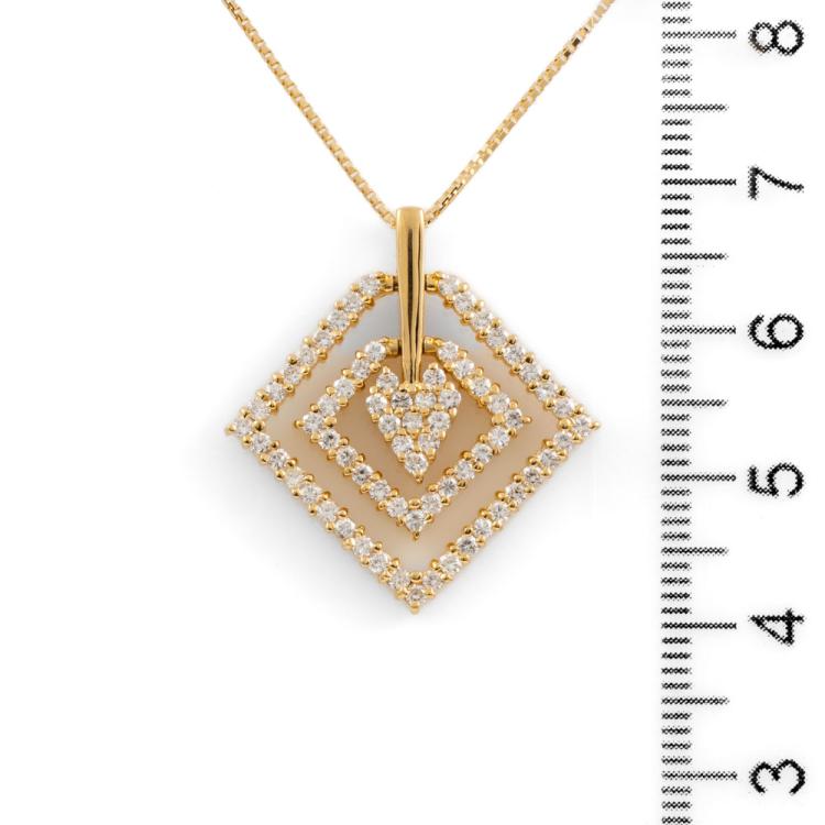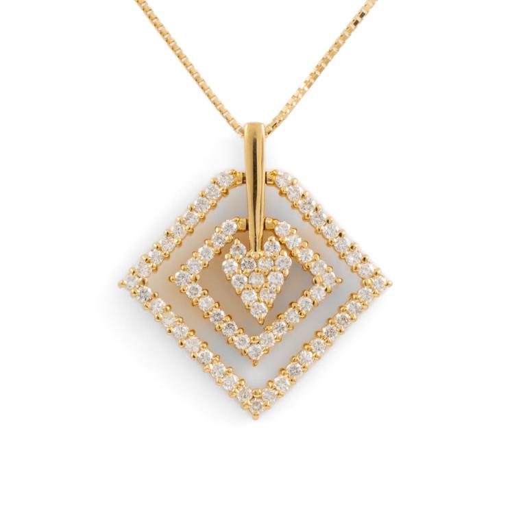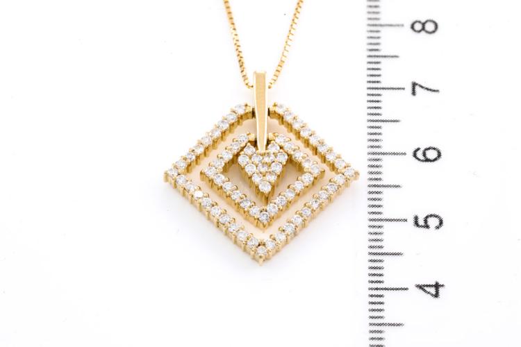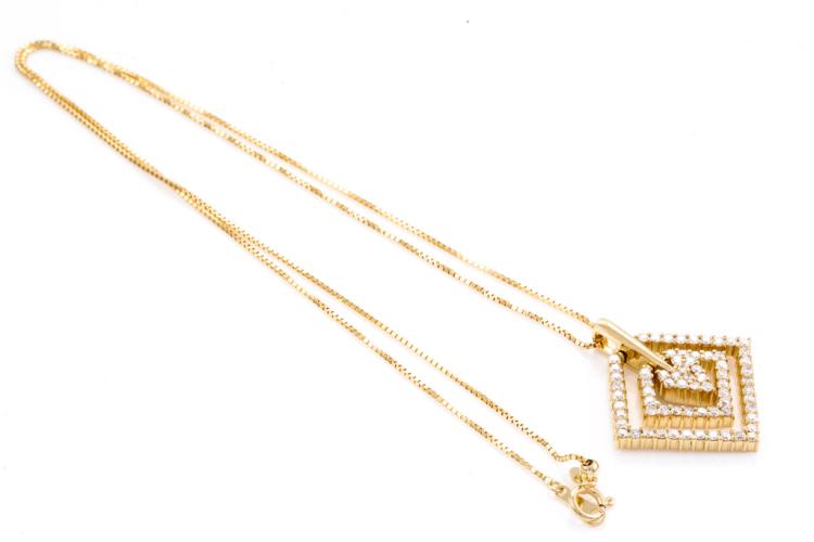Diamond dress pendant with round Natural Diamonds totalling 1.02cts (Estimated grading: H-I SI). 18ct yellow gold with 44cm 18ct yellow gold adjustable chain. Weight: 7.8g. (Pre-owned)