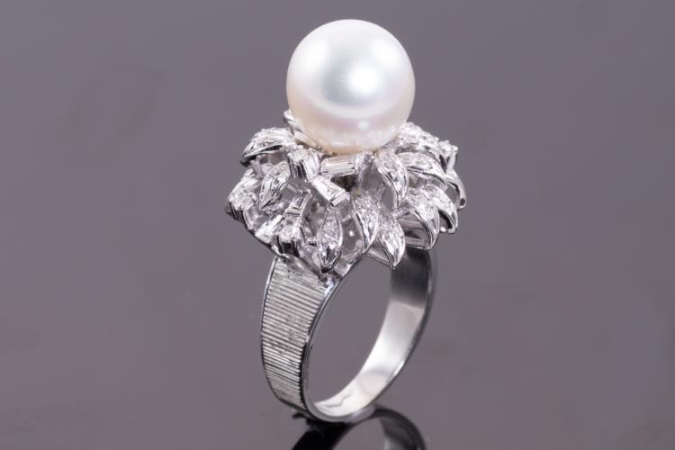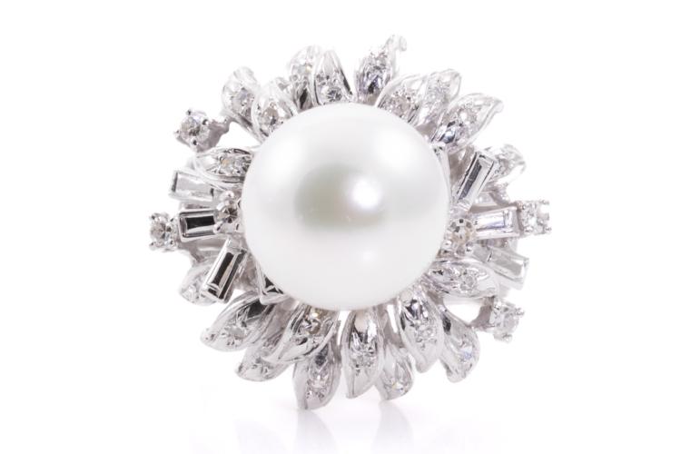11.4mm South Sea Pearl and Diamond Ring