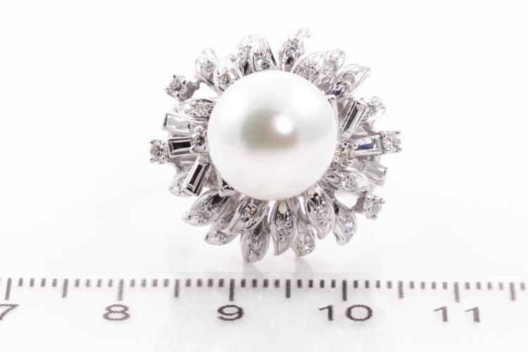 Pearl and Diamond ring with South Sea Pearl of 11.4mm with round Natural Diamonds totalling 0.35cts (Estimated grading: H SI-P1). 18ct white gold. Ring size N1/2. Weight: 11.8g (Pre-owned)