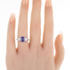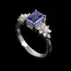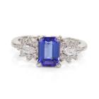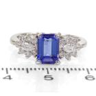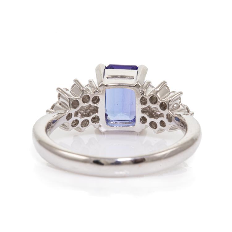 Tanzanite and Diamond ring with emerald cut Natural Tanzanite of 1.26ct and round & marquise cut Natural Diamonds totalling 0.47cts (Estimated grading: F-G SI). Platinum 950. Ring size K. Band width: 2.5mm - 1.3mm. Weight: 5.7g. (Pre-owned)