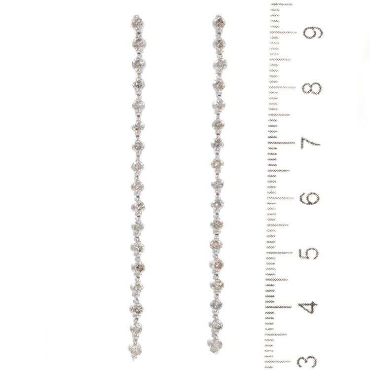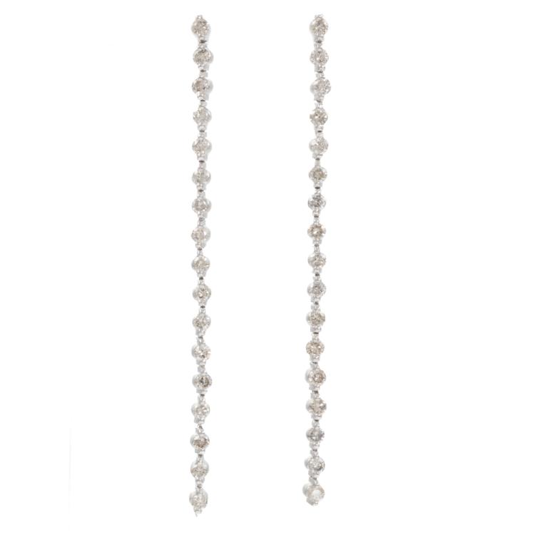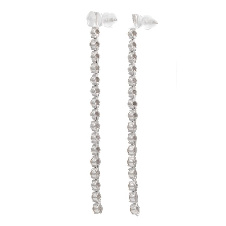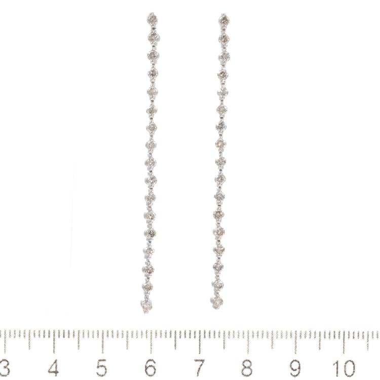 Diamond drop earrings with 34 round natural Diamonds totalling 1.30ct (Estimated grading: I-J SI-P1). Platinum 850 (XRF tested, not stamped) and silicon backs. Length: 6cm. Weight: 6.4g (As New)
