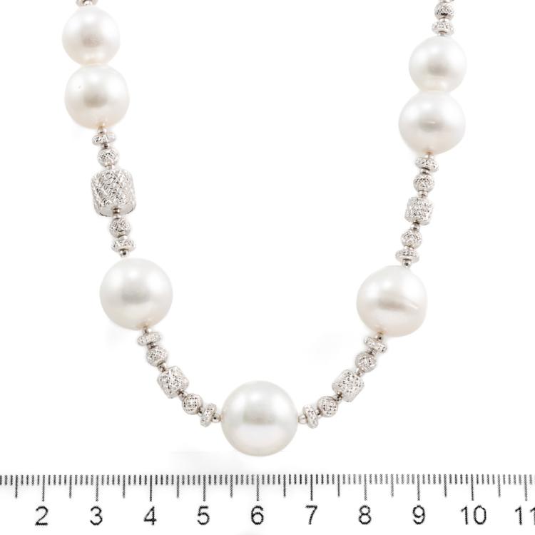 Pearl necklace with 9 South Sea Pearl of 14.1mm - 10.9mm. 18ct white gold. Length: 44.5cm. Weight: 33.9g. (Pre-owned)