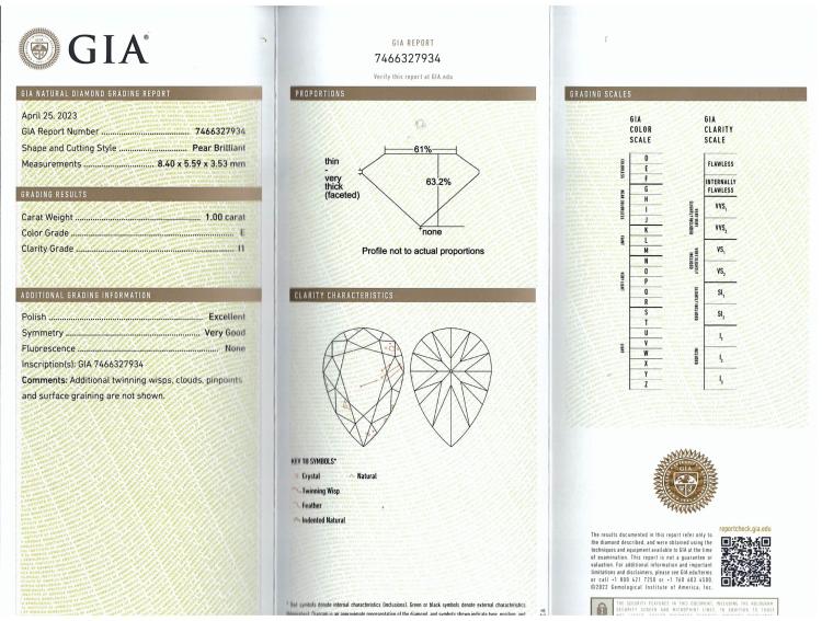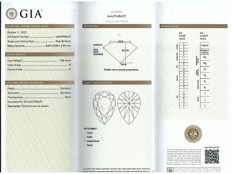 Diamond stud earrings with 2 pear shape Natural Diamonds totalling 2.00cts (both with GIA Reports graded as D P1 and E P1# 7466327934, 6442948629). 18ct yellow gold. Weight 3.0g. (New)