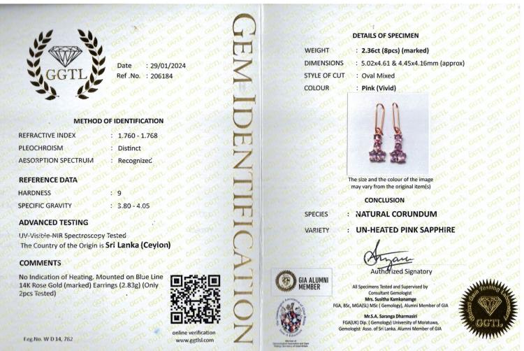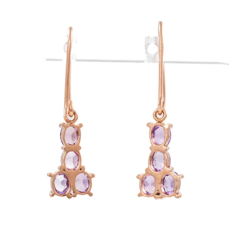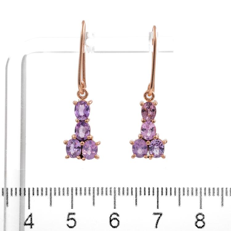 Sapphire shepherds hook earrings with oval shape Ceylon unheated natural pink Sapphires totalling 2.36ct. 14ct rose gold. Weight: 2.8g. With GGTL Report #206184. (As new)