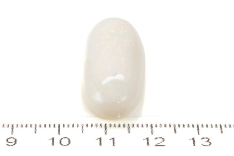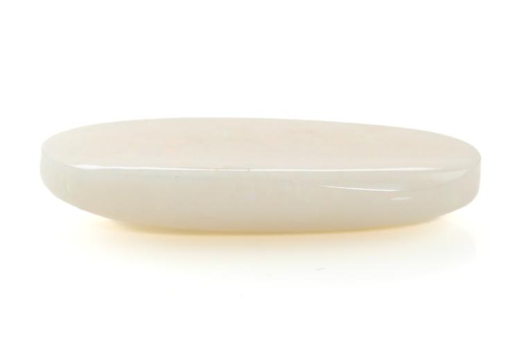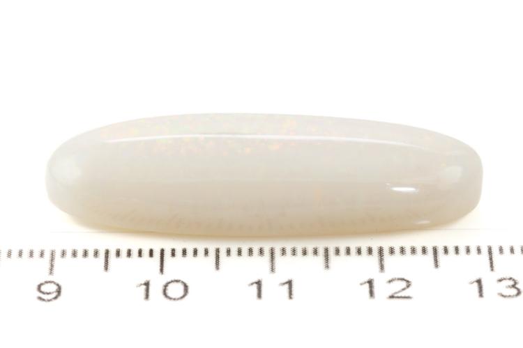 A loose cabochon cut oval solid white Opal of 27.82ct. Dimensions 41.0x14.7x8.6 mm. (As New)^