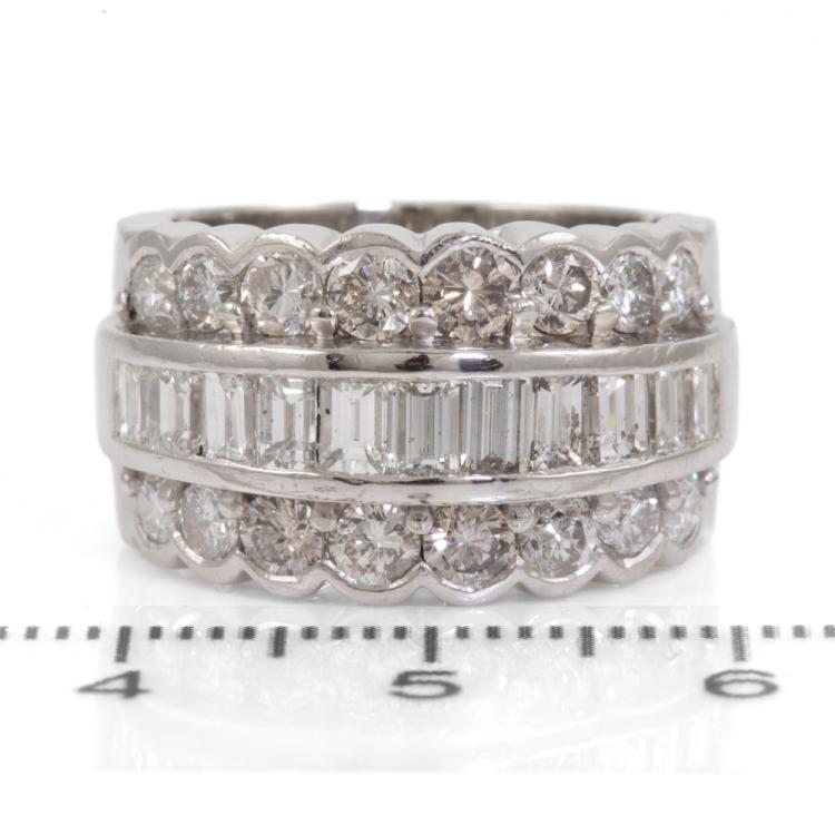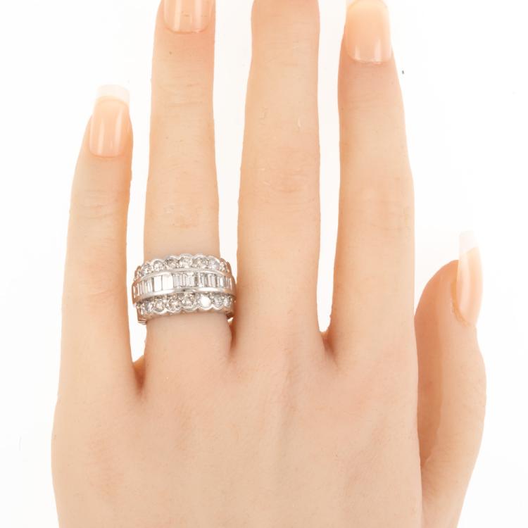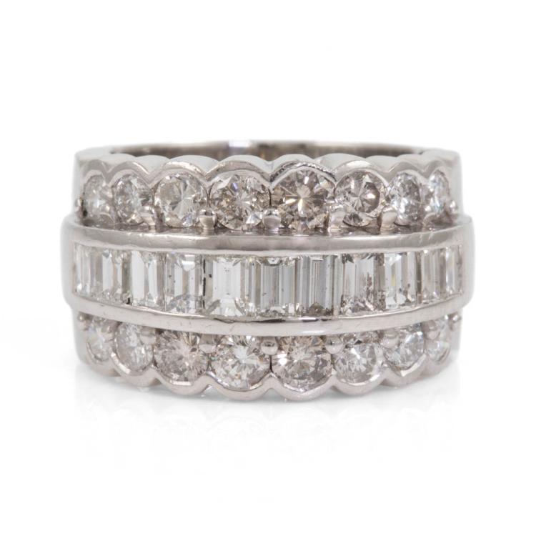 Diamond ring with round & baguette cut Natural Diamonds totalling 3.00ct (Estimated grading: G-H SI). Platinum 900. Ring size L1/2 - ring resizing is not recommended. Band width: 9.7mm - 10.3mm. Weight: 16.3g. With Valuation Certificate 418436. (Pre-owned)