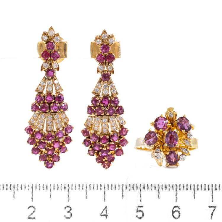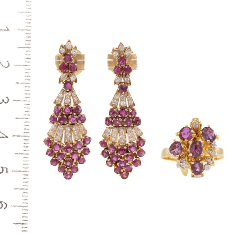 3.00ct Ruby & Diamond Earring & Ring Set