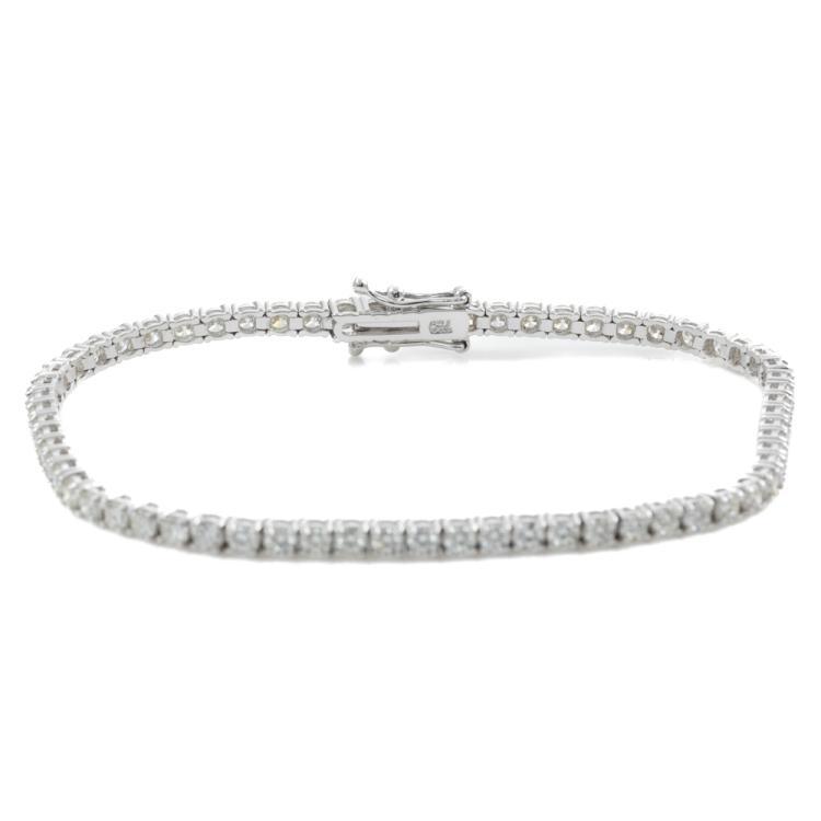 Diamond tennis bracelet with 64 round brilliant natural Diamonds totalling 3.73ct (Estimated grading: I-J VS-SI). 18ct white gold. Length: 18cm. Weight: 9.1g. With Valuation Certificate #418809. (New)