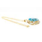 Topaz and Diamond pendant with fancy cut blue Natural Topaz of 58.76ct and round Natural Diamonds totalling 0.12ct. 18ct yellow gold and platinum with 40cm 18ct yellow gold chain. Weight 25.6g. (Pre-owned)