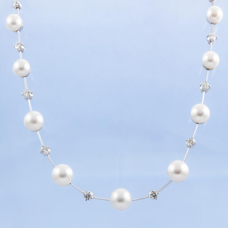 6.2-9.1mm Akoya Pearl & Diamond Necklace
