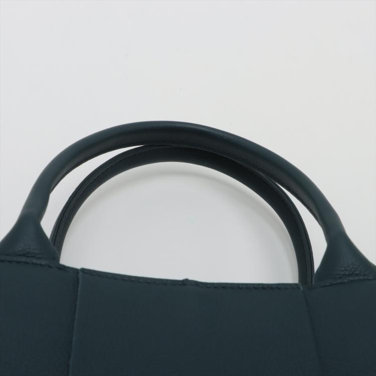 Bottega Veneta small maxi Intrecciato Arco tote bag in woven navy blue calfskin leather. Featuring dual handles, silver-toned hardware and detachable zipped pouch. The leather string closure opens to a blue spacious suede interior. Approximate dimensions: 30cm(L) x 20cm(H) x 11.5cm(D), handle drop 15cm. Accompanied by a Bottega Veneta dustbag. With Entrupy Certificate of Authenticity. (Pre-owned)