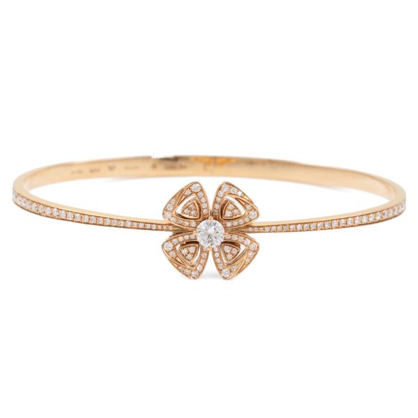 Bvlgari Fiorever Diamond bracelet with a centre natural round Diamond of 0.30ct and surrounding round natural Diamonds totalling approximately 0.63ct (Estimated grading: F-G VS). 18ct rose gold. Bvlgari stamped size M. Circumference: 17cm. Made in Italy. Weight: 15.8g. With Certificate #418766. (Pre-owned)