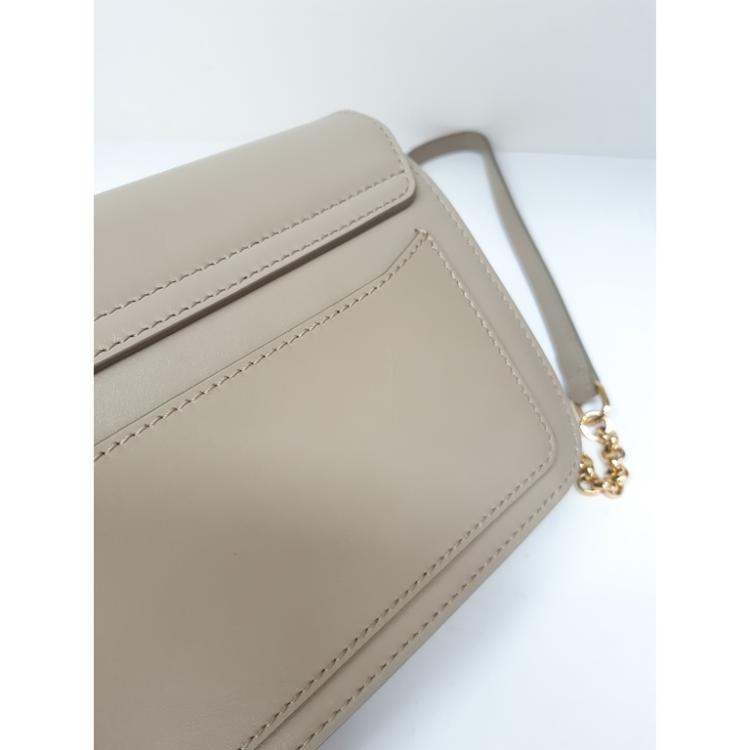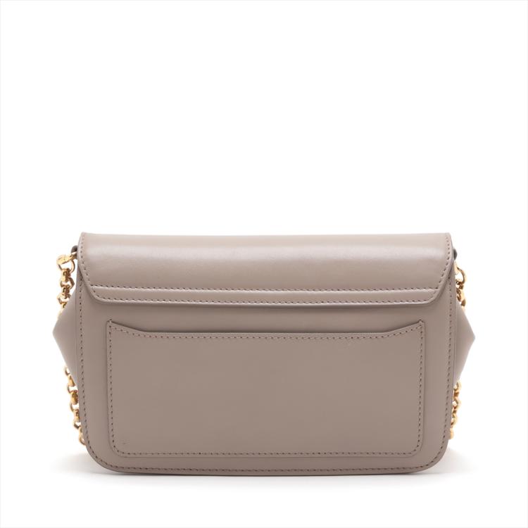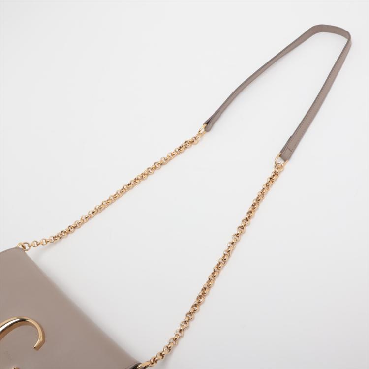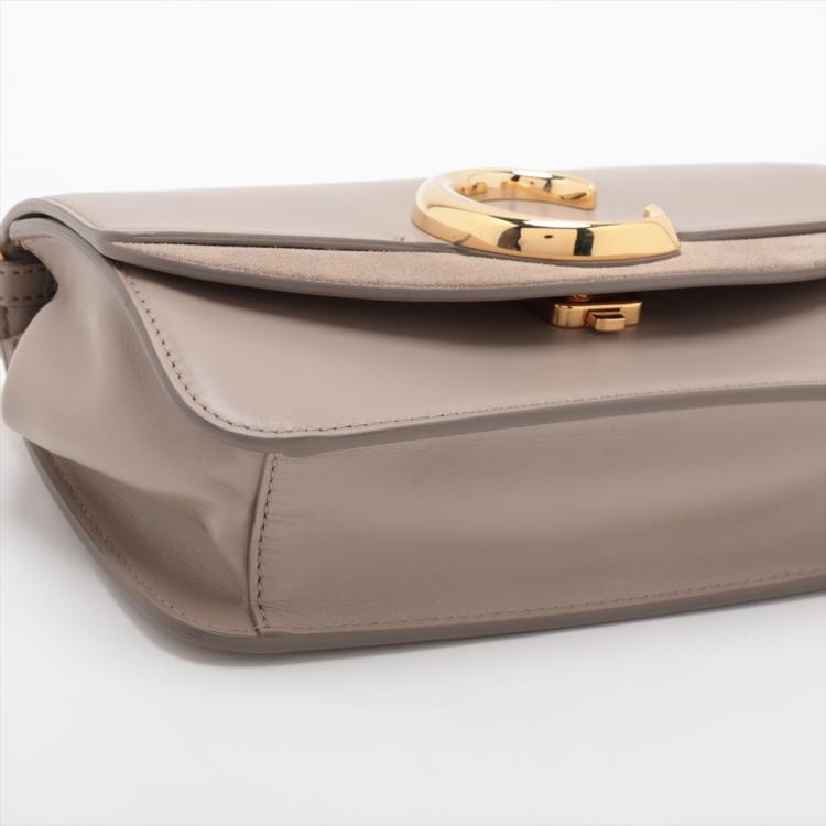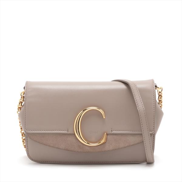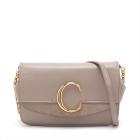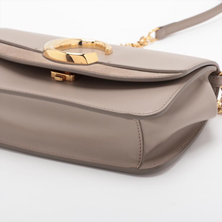Chloe suede C chain/clutch bag in Suede and smooth leather in Motty Grey colour. Featuring gold tone hardware, a decorative C across the front flap, a flat pocket at back. The flap with push-in lock opens to a beige fabric interior with a patch pocket. Approximate dimensions: 21cm(L) x 13.5cm(H) x 5.5cm(D), 51.5cm leather-chain strap drop height. Accompanied by a Chloe dust bag. With Entrupy Certificate of Authenticity. (Pre-owned)