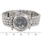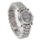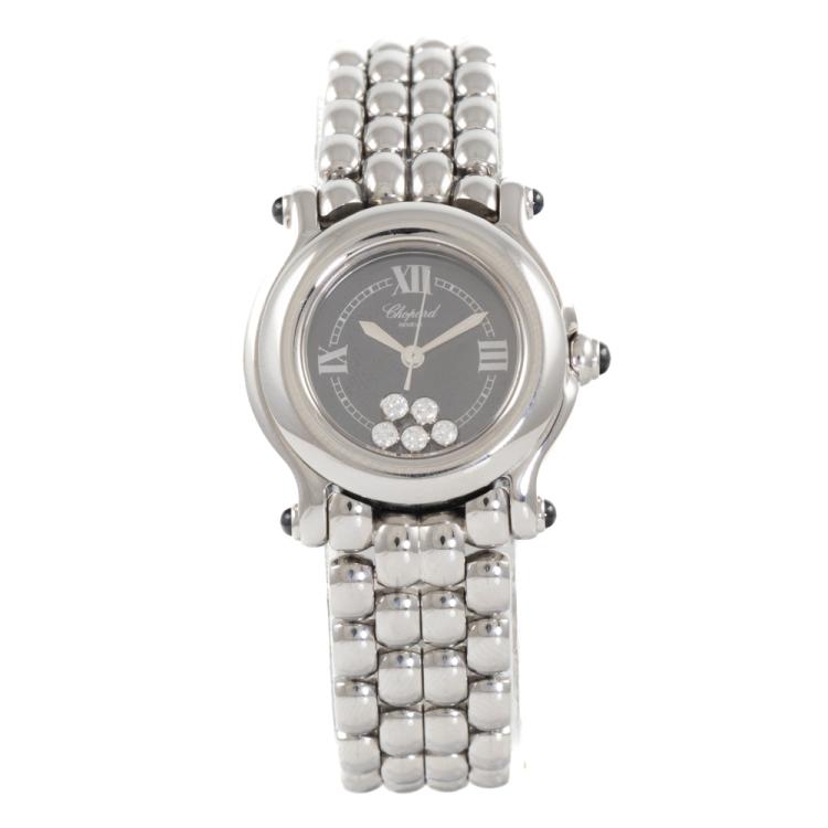 Chopard Happy Sport stainless steel quartz ladies watch. Black dial with 5 floating Diamonds, case diameter: 26mm, wrist size: 16.5cm, Swiss made. Ref# 27/8250-23. With Chopard stainless steel bracelet and clasp. With Certificate of Authenticity and Chopard box. 3 month FSA warranty. (Pre-owned)