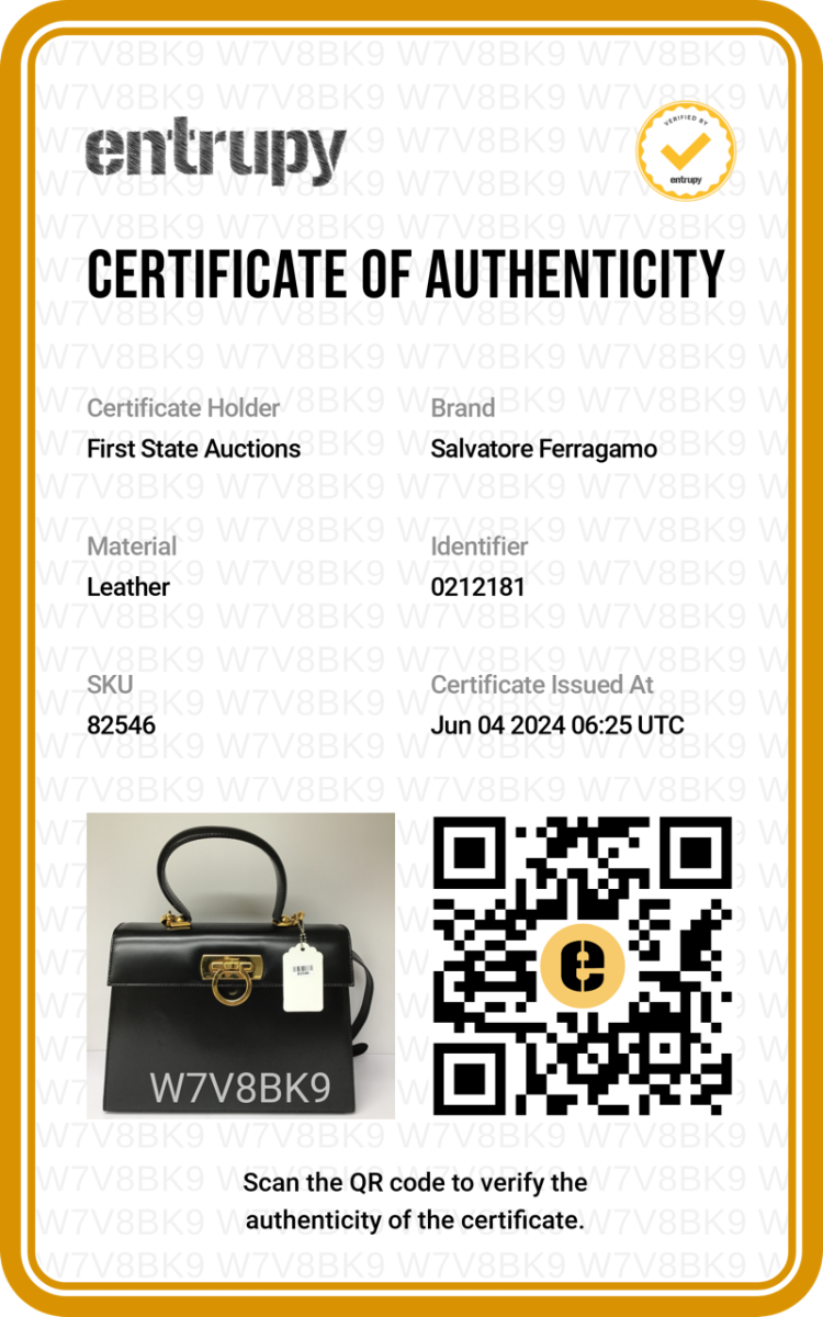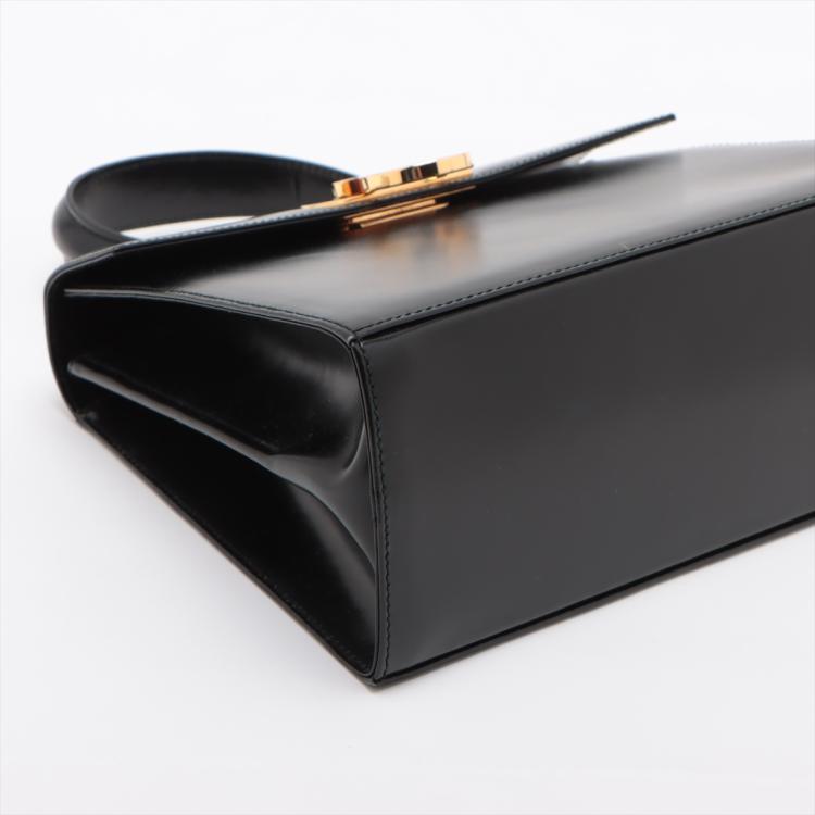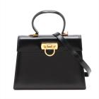 Ferragamo Gancini medium top handle bag in brushed-off calfskin. Featuring gold tone hardware, single leather top handle, front flap with a Gancini clasp. This opens to a fabric lining interior with 2 compartments and a zipper pocket. Approximate dimensions: 28cm(L) x 20.5cm(H) x 9.5cm(D), 9.5cm handle drop and 47cm shoulder drop. Accompanied by Ferragamo dust bag and box. With Entrupy Certificate of Authenticity. (Pre-owned)