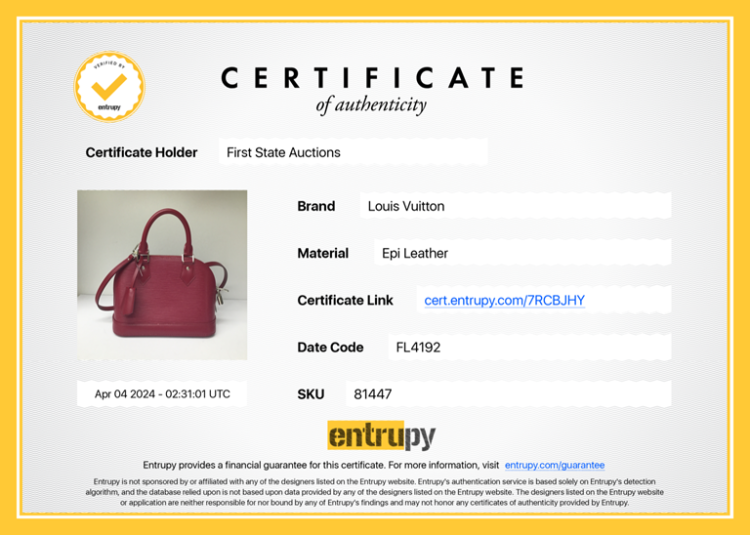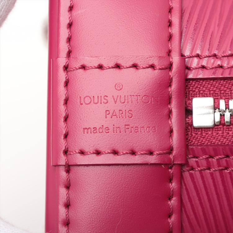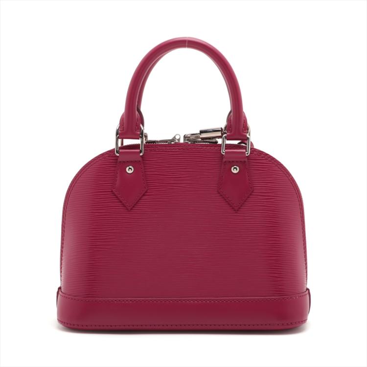 Louis Vuitton Alma BB bag in Burgundy Epi leather. Featuring smooth cowhide-leather trim, silver-toned hardware, dual rolled handles and double zip closure. The top opens to a matching colour microfiber lining interior with a patched pocket. Approximate dimensions: 24cm (L) x 16.5cm (H) x 11.5cm (D), 9cm handle drop and 56cm detachable strap drop. Accompanied by LV padlock, keys, crochet, dust bag & box. With Entrupy Certificate of Authenticity. (Pre-owned)