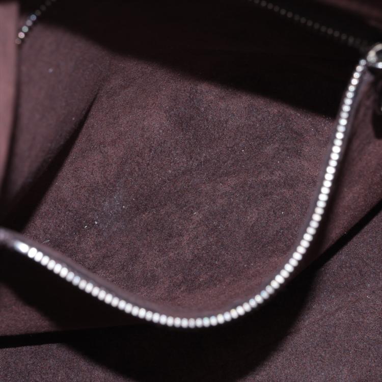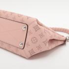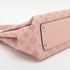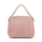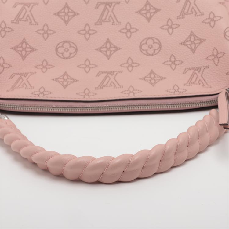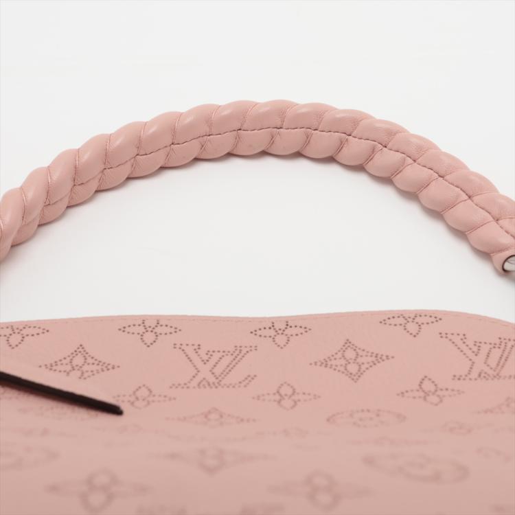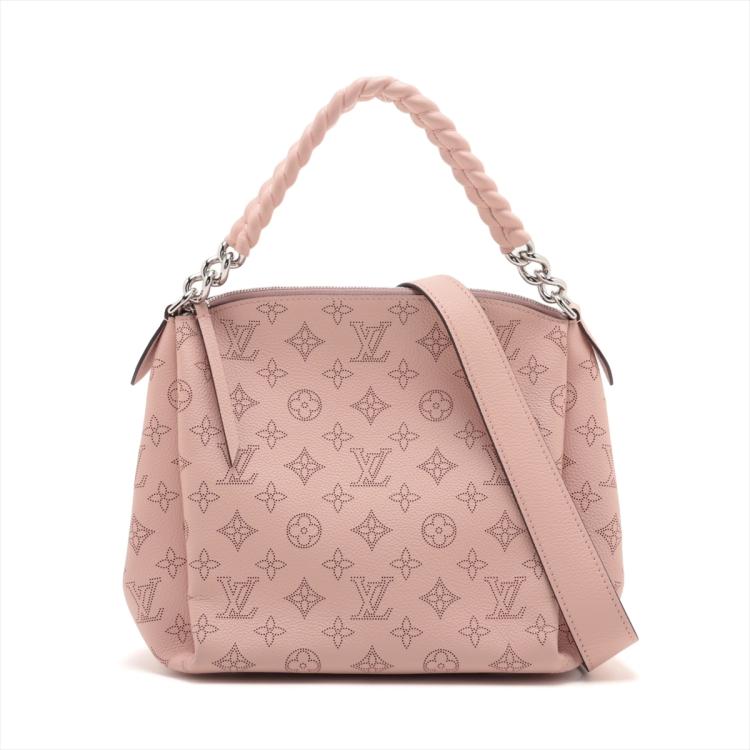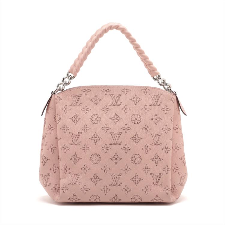 Louis Vuitton Mahina Babylon chain BB in Magnolia Mahina leather. Featuring a pink leather trim top handle, detachable strap, and silver-toned hardware. The zipper closure opens to a brown microfiber interior with zipper and patch pockets. Approximate dimensions: 23cm(L) x 22cm(H) x 14cm(D), handle drop 11cm, strap drop 49.5cm. Accompanied by a LV dustbag. With Entrupy Certificate of Authenticity. (Pre-owned)