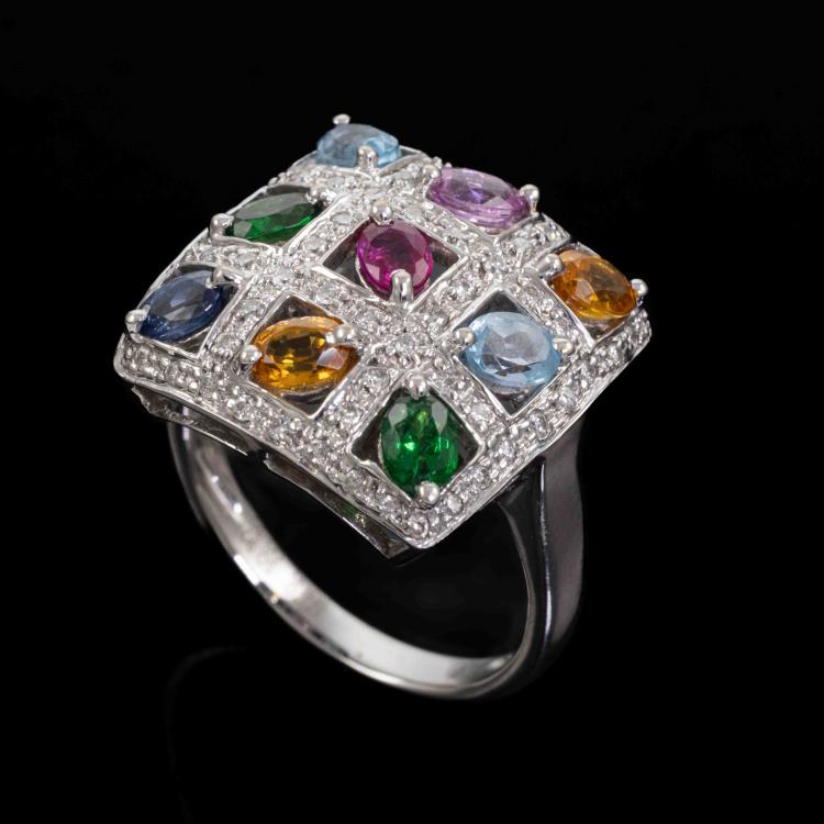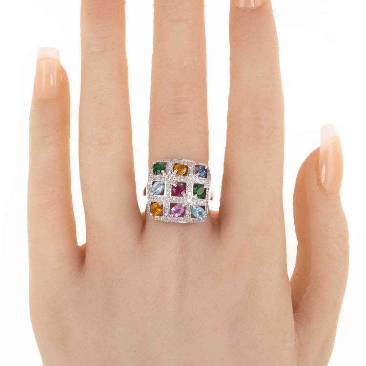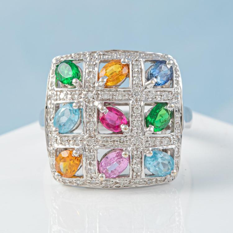 Mixed Gemstone & Diamond Ring