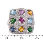 Mixed gemstone ring with oval shape multi-coloured Natural Sapphires totalling 0.90ct, an oval shape Natural Ruby of 0.10ct, oval shape Natural blue Topaz totalling approximately 0.40ct, oval shape Natural Emeralds totalling approximately 0.30ct and round Natural Diamonds totalling 0.30ct (Estimated grading: H SI). 18ct white gold. Ring size N. Band Width: 2.5 - 3.1mm. Weight: 7.1g. (Prre-owned)