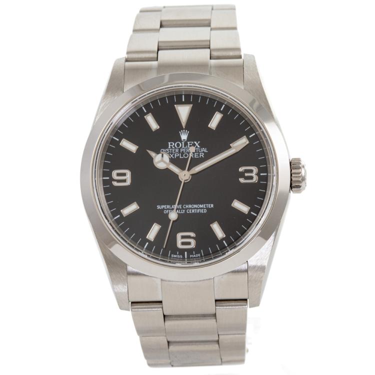 Rolex Oyster Perpetual Explorer stainless steel automatic watch. Black dial, case diameter: 36mm, wrist size: 17cm, Swiss made. Ref# 114270. Circa: 2001.
