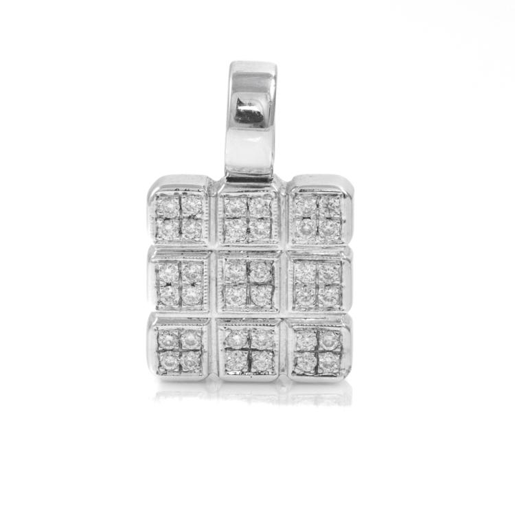 Diamond square design pendant with round Natural Diamonds totalling 0.32cts (Estimated grading: G-H SI). 18ct white gold. No chain provided. Size: 13mm x 20mm. Weight: 6.0g. (As new)