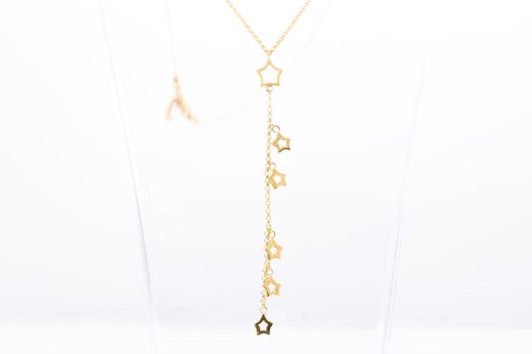 Star Jewellery 18ct yellow gold necklace with 40cm 18ct yellow gold chain. 9cm drop star design pendant. Weight: 11.5g. (Pre-owned)