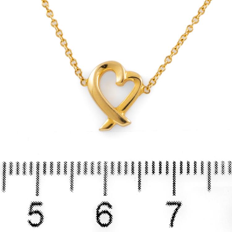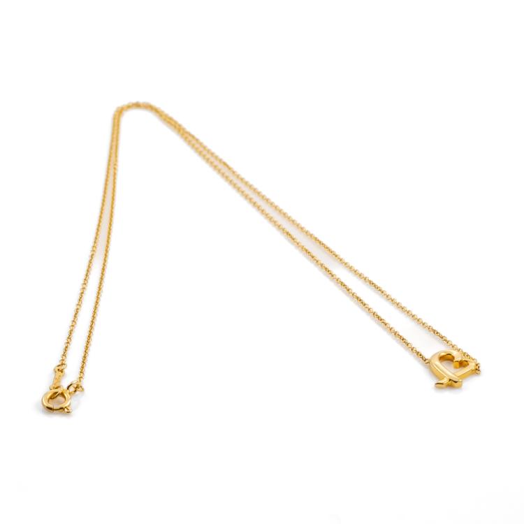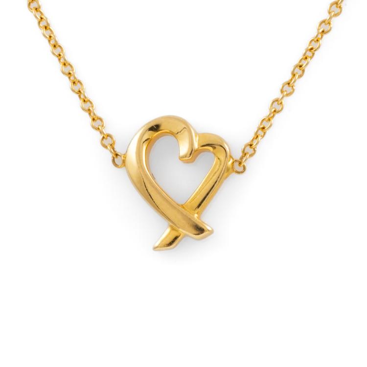 Tiffany & Co. Paloma Picasso Loving Heart Necklace. 18ct yellow gold with Tiffany & Co 18ct yellow gold, length of necklace 46cm. Item dimensions: 9.9mm - 8.0mm. Weight: 2.5g. With Tiffany & Co box. (Pre-owned)