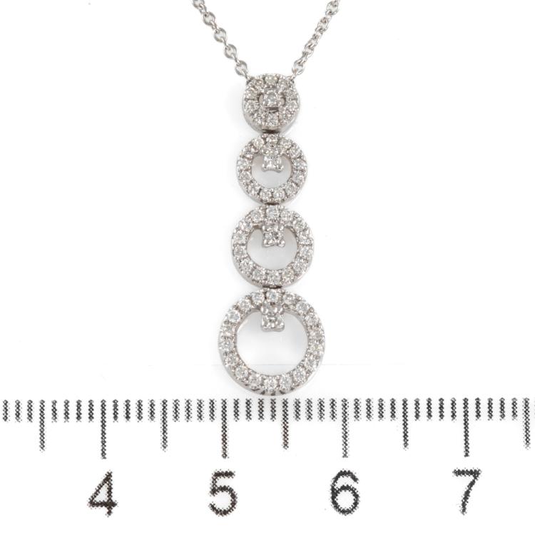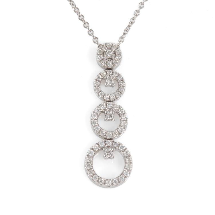 Diamond dress pendant with round Natural Diamonds totalling 0.32cts (Estimated grading: H SI). 18ct white gold with 18ct white gold adjustable 37cm chain. Pendant length: 2.7cm. Weight: 4.9g. (Pre-owned)