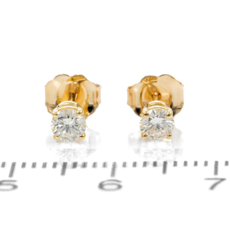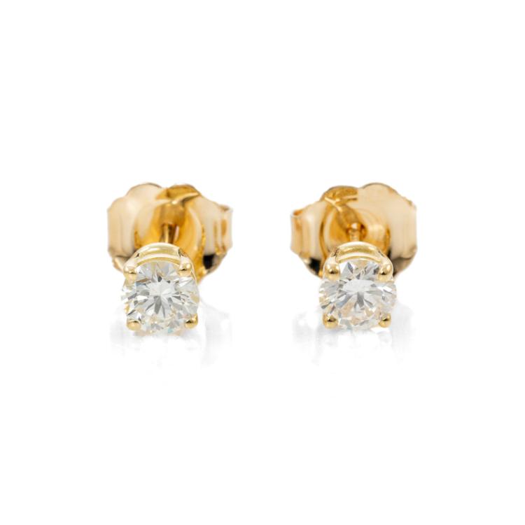 Diamond stud earrings with 2 round brilliant cut natural Diamonds totalling 0.33ct (Estimated grading: J VS). 18ct yellow gold. Weight 0.8g. (New)