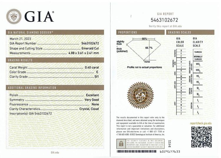 A loose emerald cut Natural Diamond of 0.40ct (with GIA report graded as E SI1 #5463102672