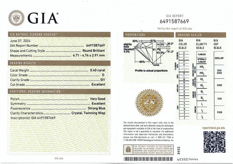 Diamond stud earrings with 2 round brilliant cut natural Diamonds totalling 0.80ct (with GIA Summary Reports graded as D SI1 #6491587669, 1498535254). 18ct white gold. Weight: 0.9g. (New)