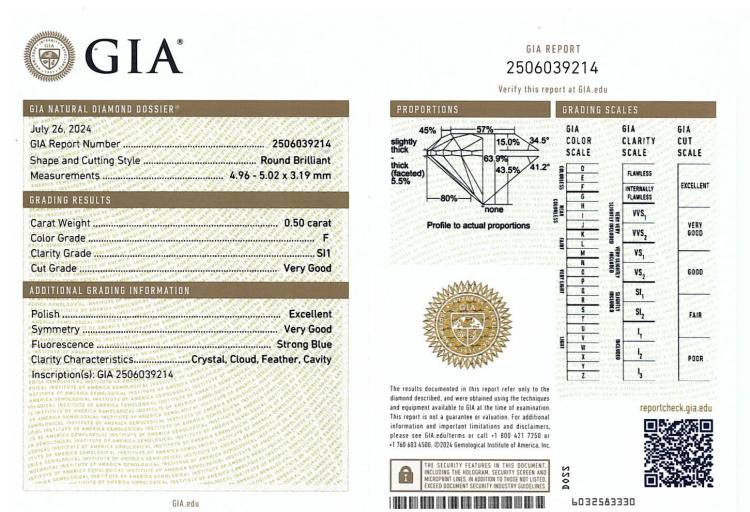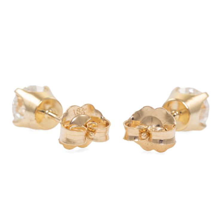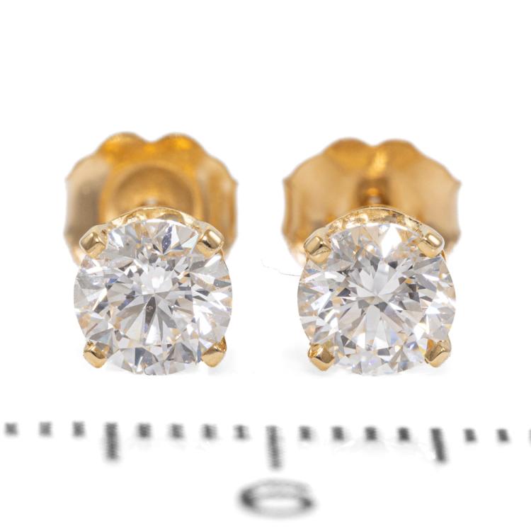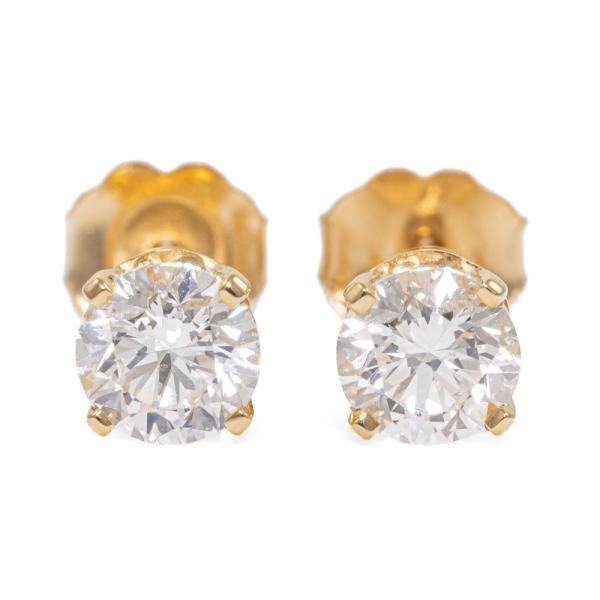 Diamond stud earrings with 2 round brilliant cut natural Diamonds totalling 1.00ct (with GIA Summary Reports graded as F SI1 #6492675661, 2506039214). 18ct yellow gold. Weight: 1.3g. (New)
