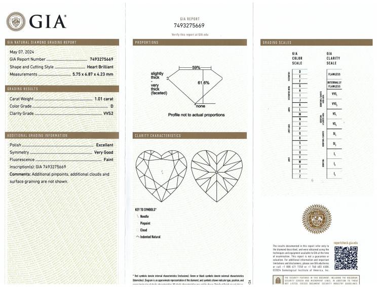 A loose heart shape natural Diamond of 1.01ct (with GIA report graded as D VVS2 #77493275669) (New)